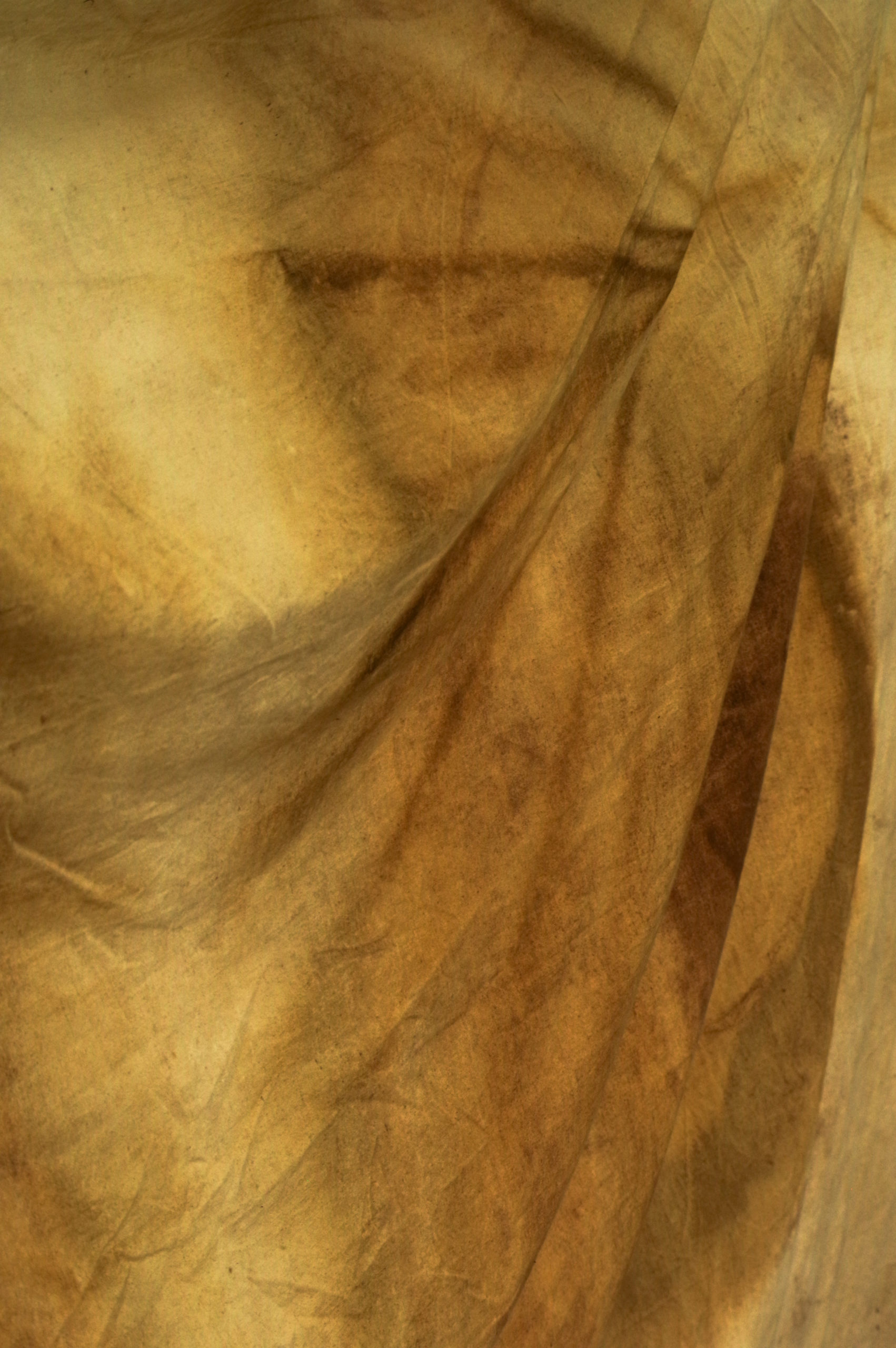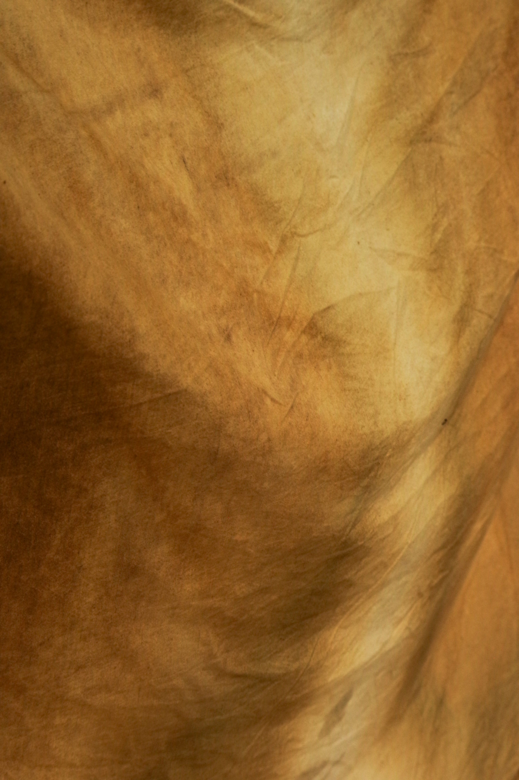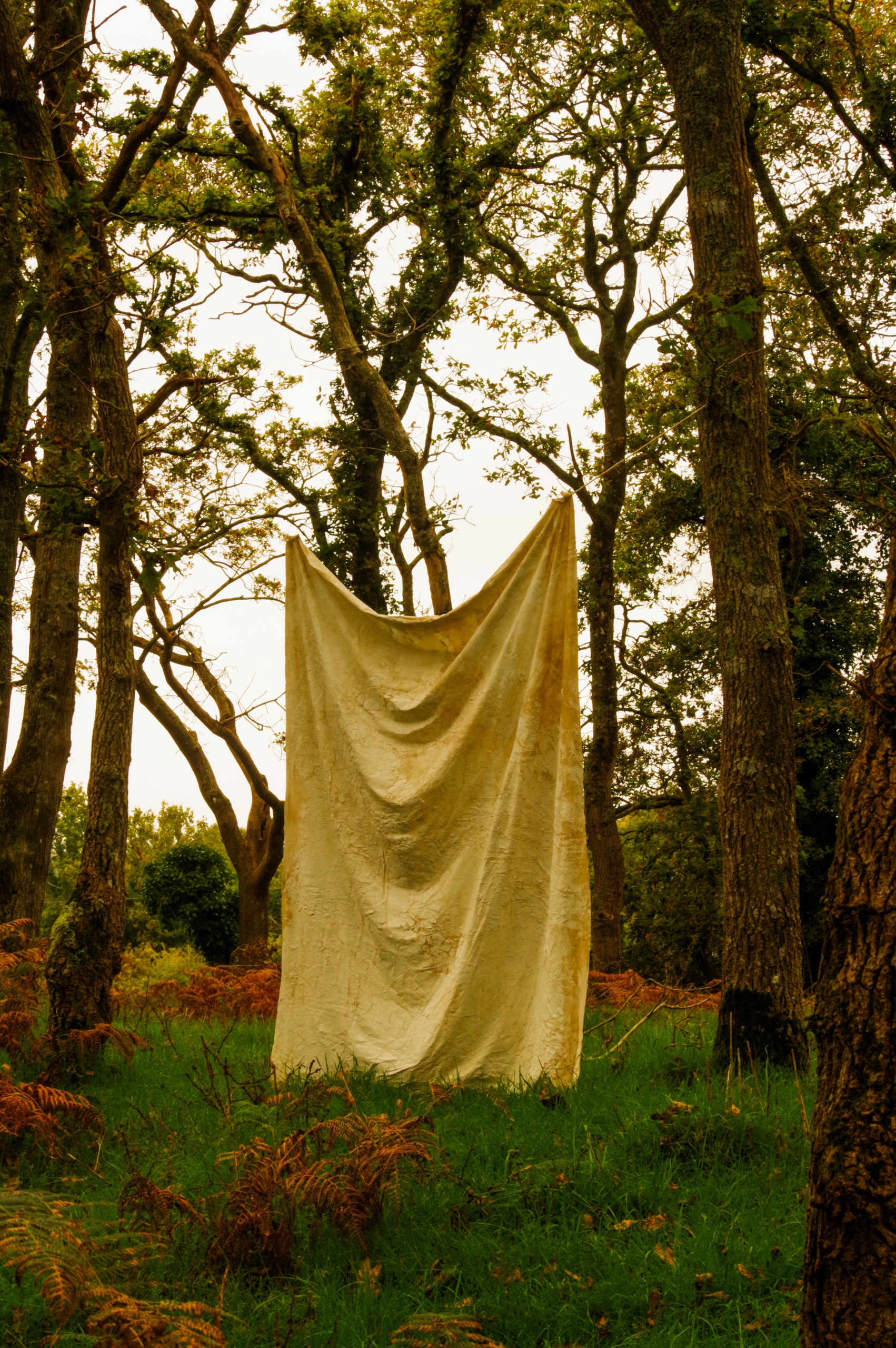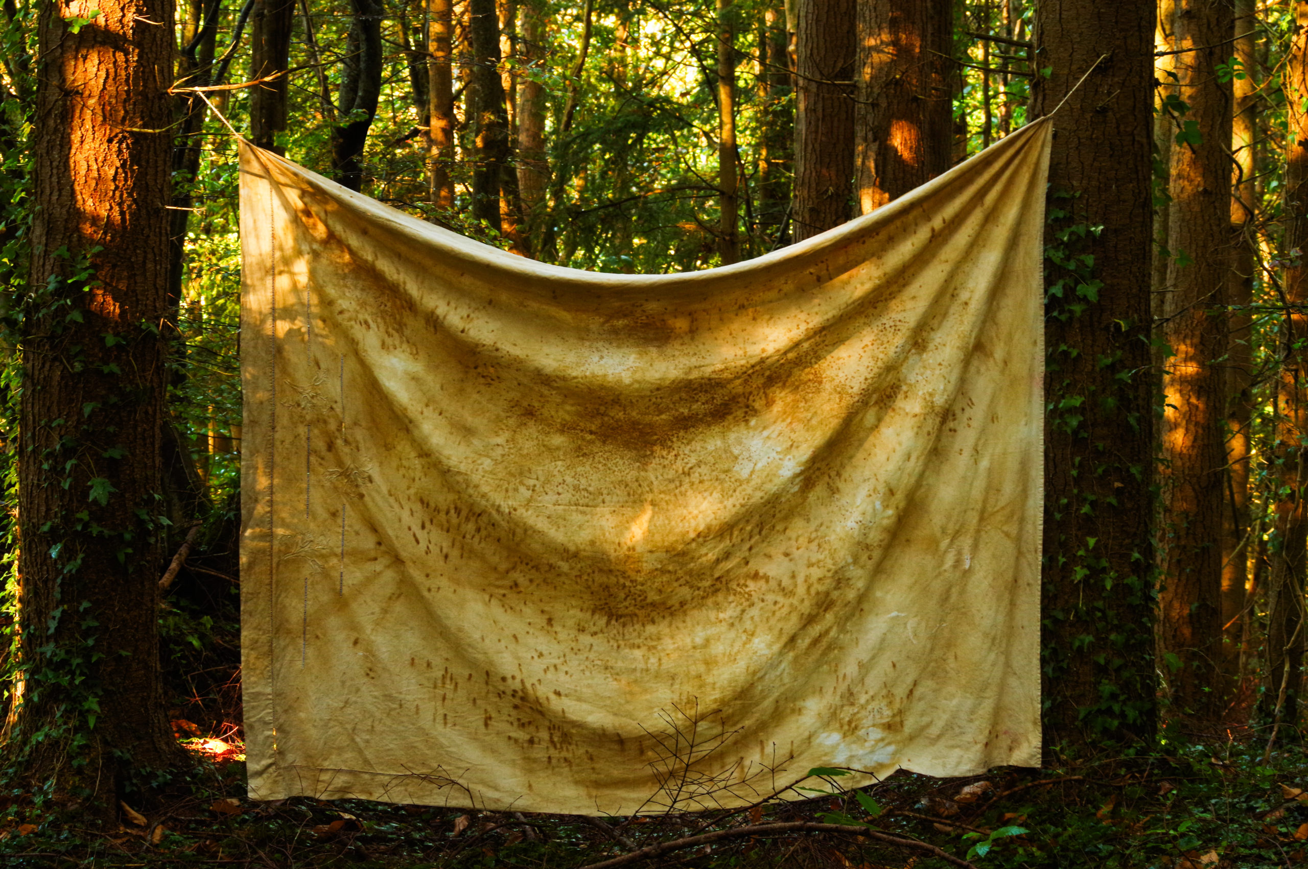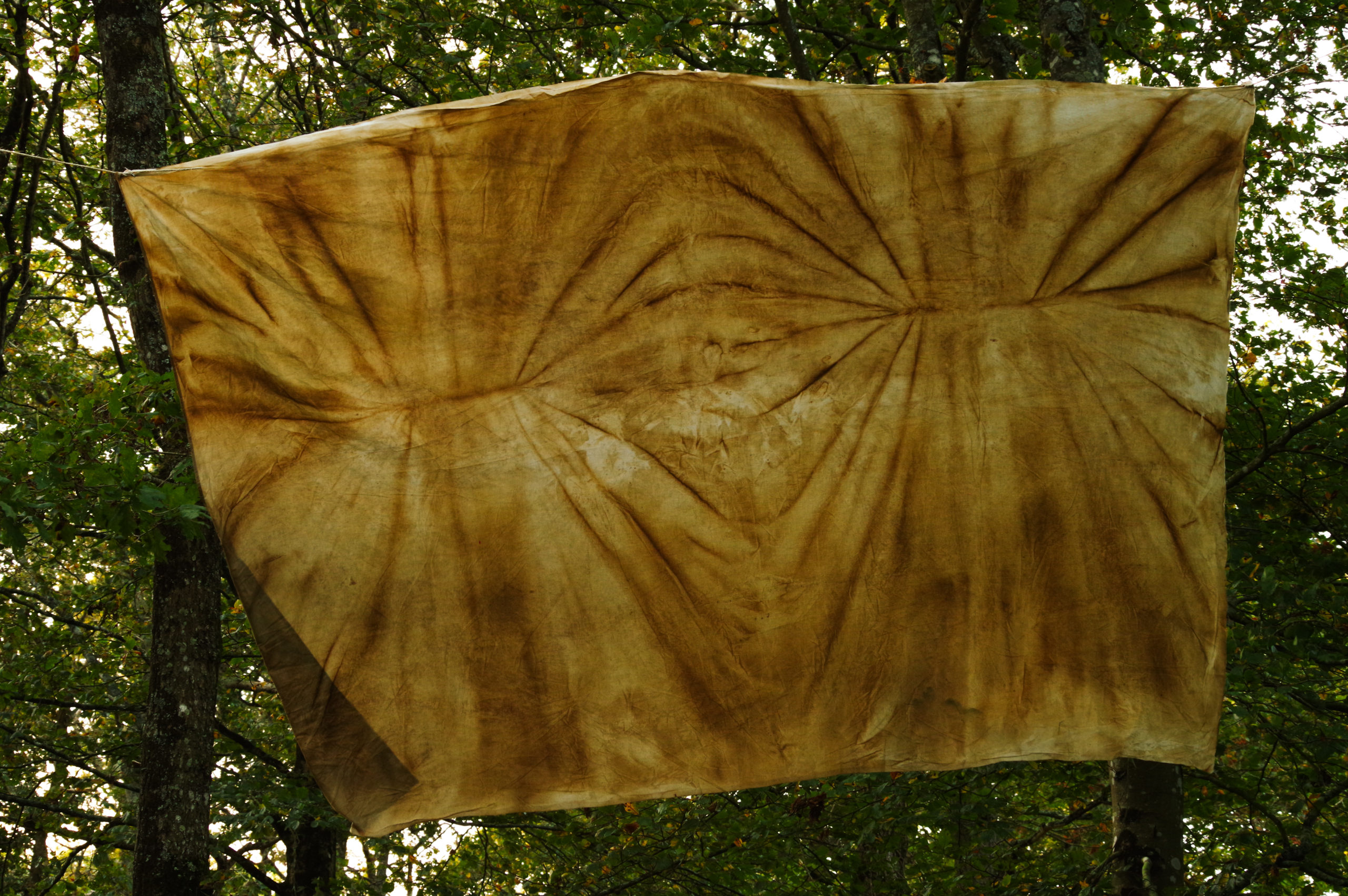 Matières utilisées : Drap de coton, permanganate de potassium, terre, café, plâtre, thé, rouille.