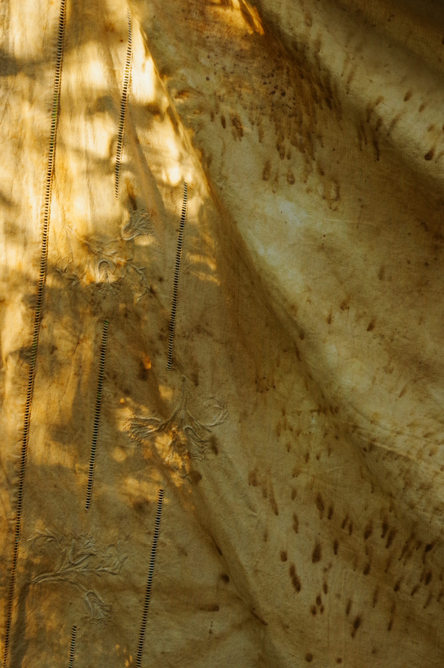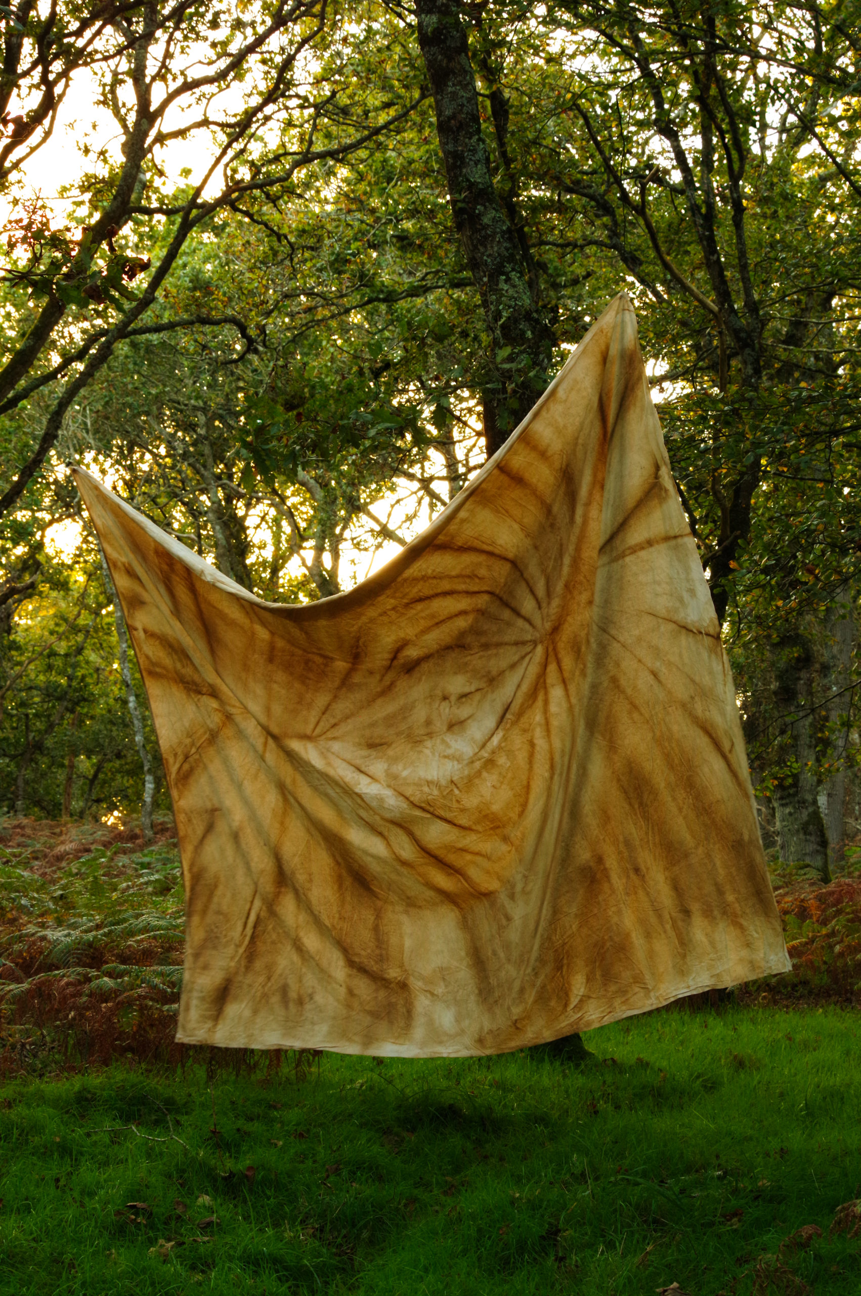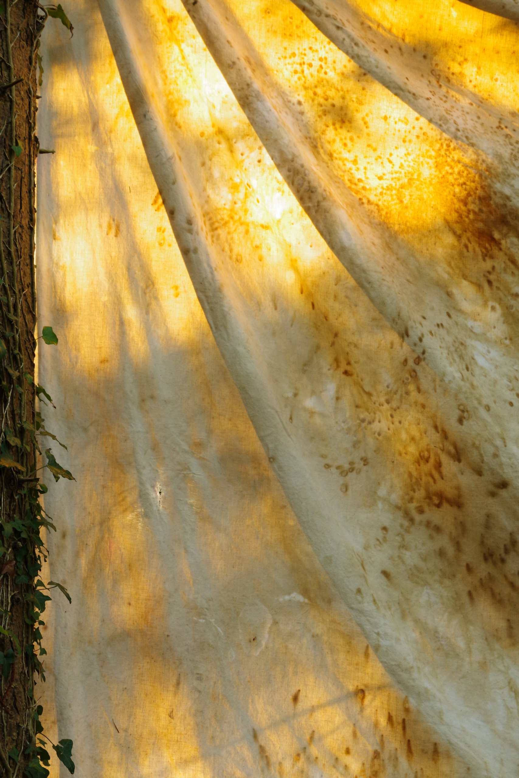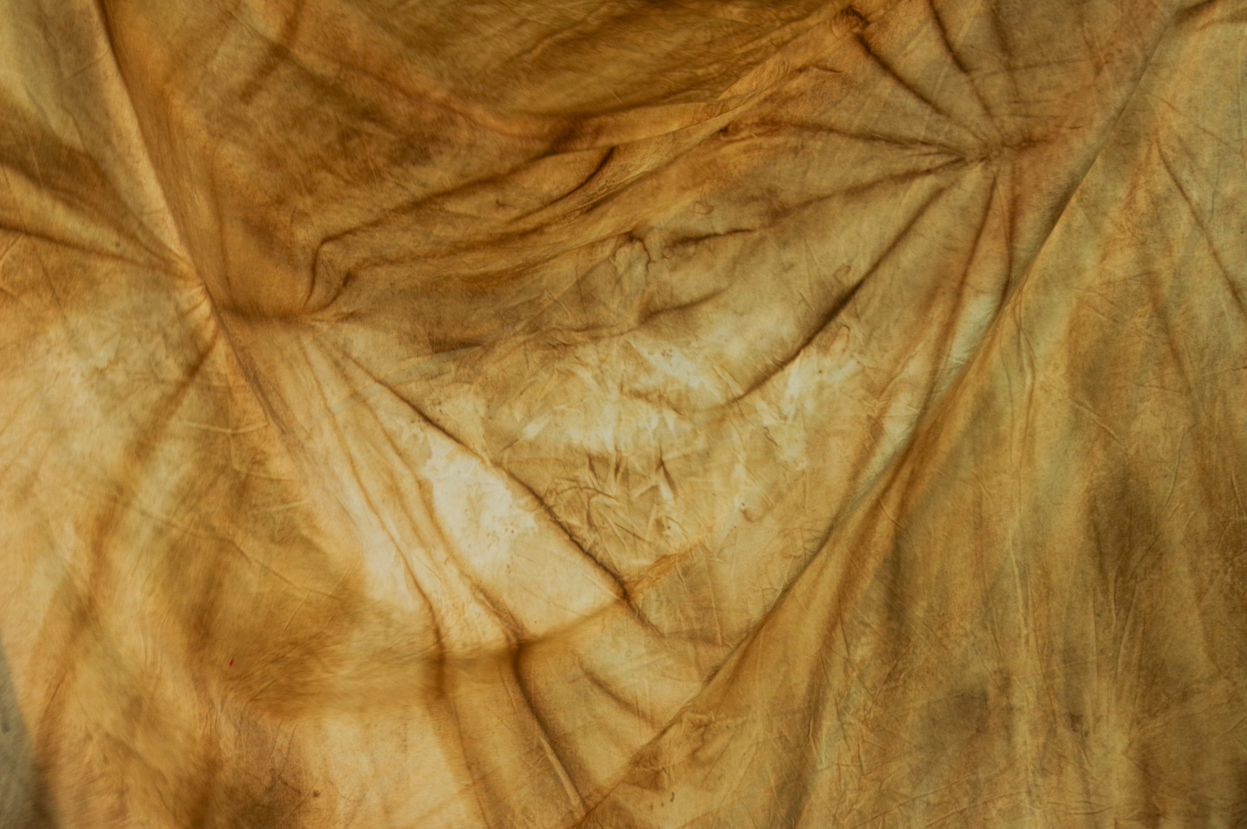 Matières utilisées : Drap de coton, permanganate de potassium, terre, café, plâtre, thé, rouille.