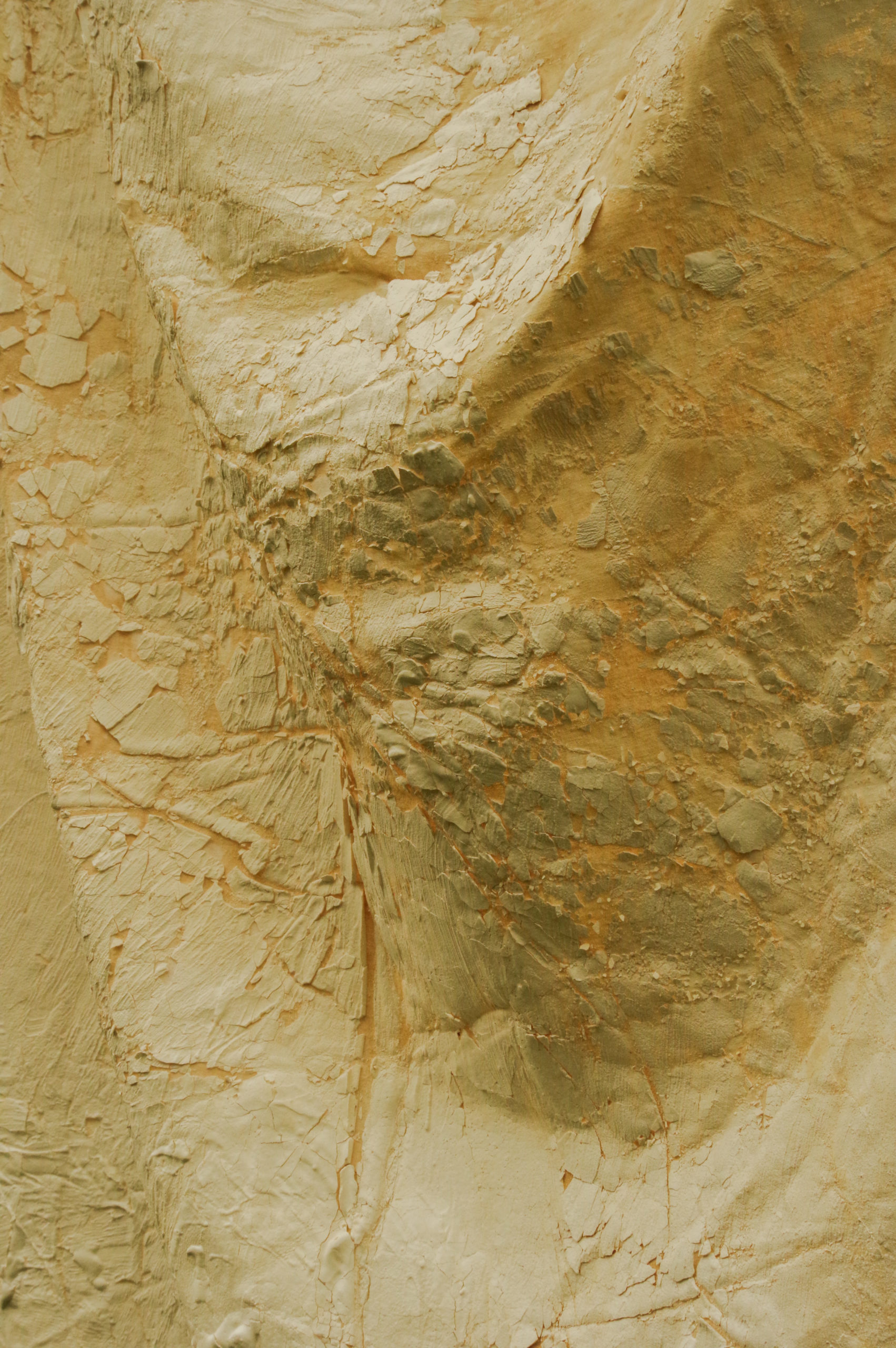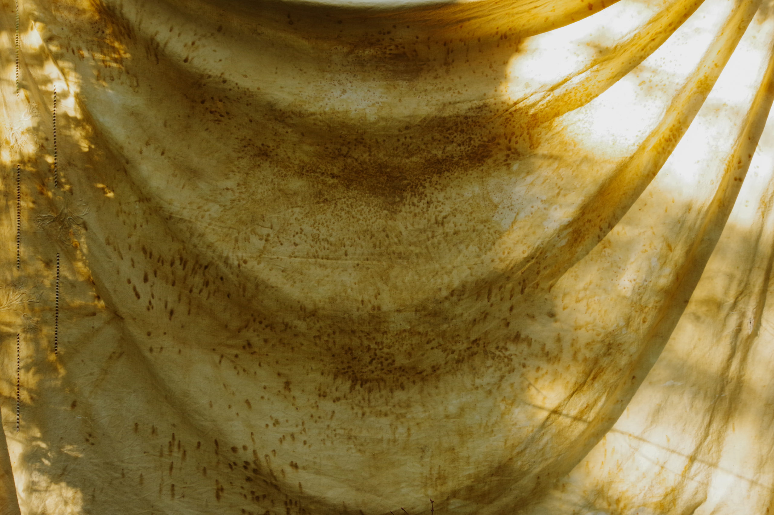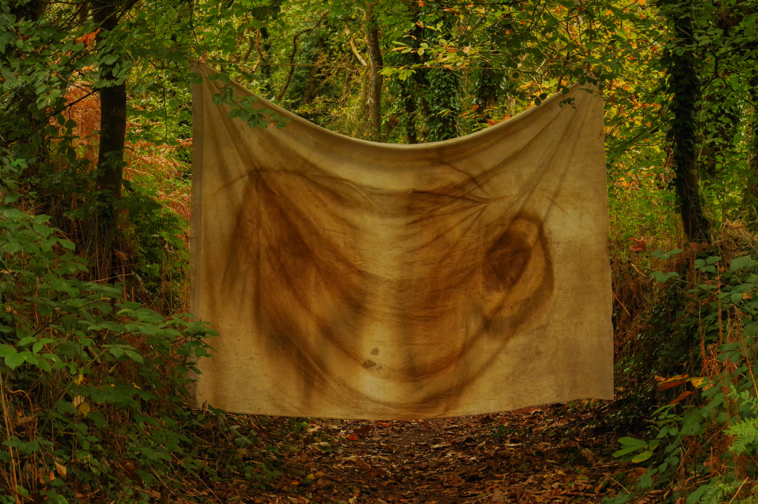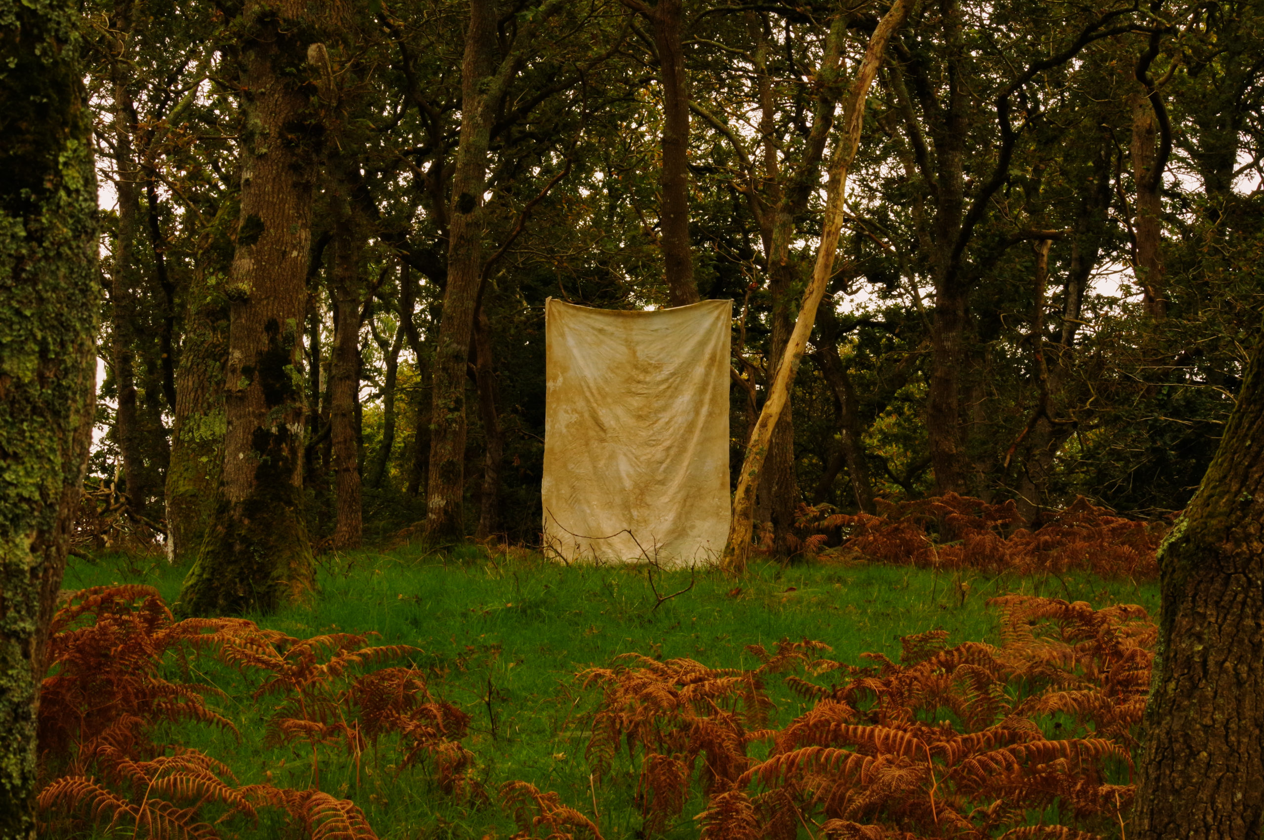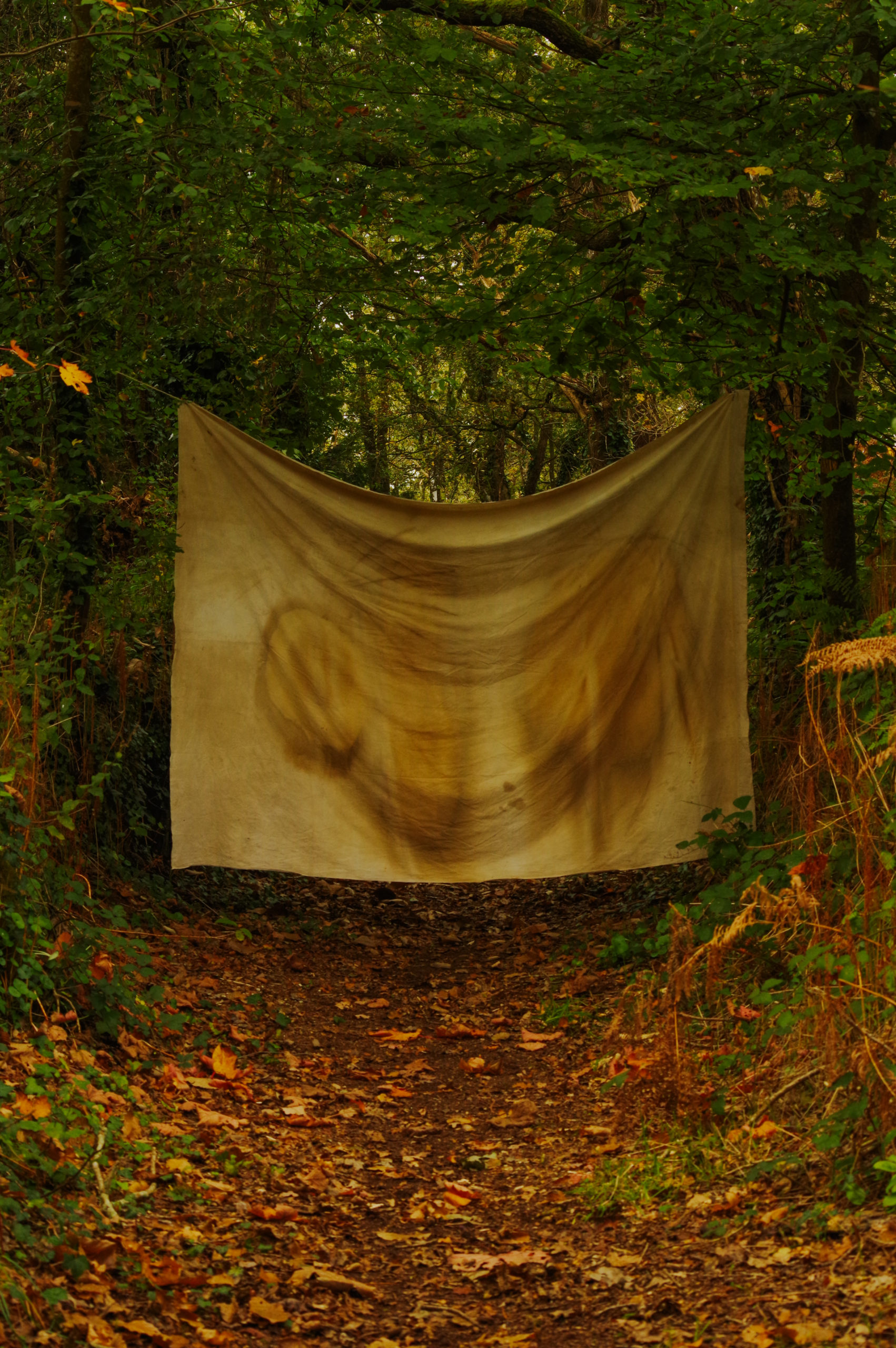 Matières utilisées : Drap de coton, permanganate de potassium, terre, café, plâtre, thé, rouille.