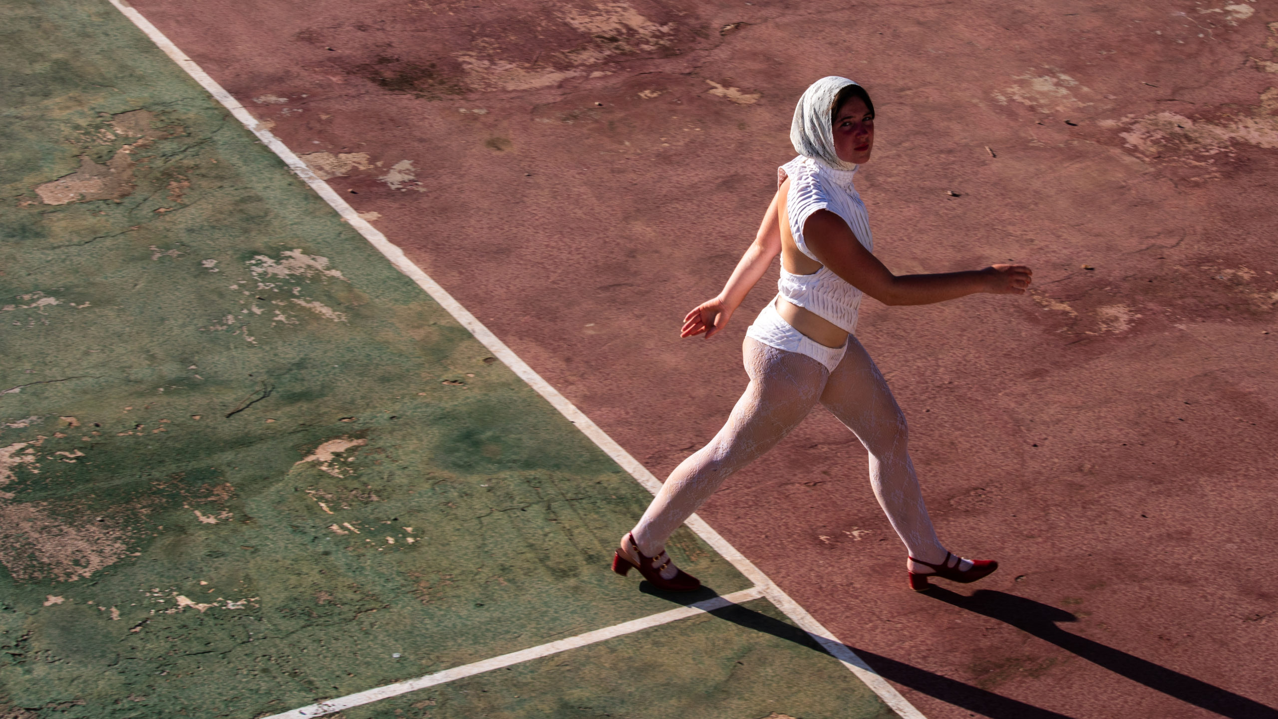 La protagoniste à la conquête d’un espace dans lequel s’exercer, se retrouve désarmée face à cette absence de liquide. Malgré ses efforts pour réinvestir le lieu, elle se confronte à l’absurdité de sa quête.